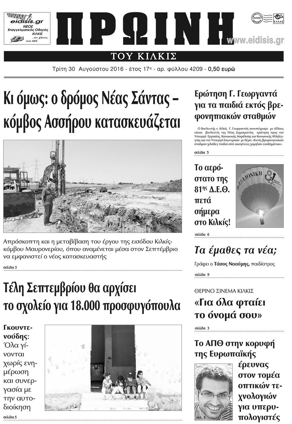 Πέντε χρόνια πριν. Διαβάστε τι έγραφε η καθημερινή εφημερίδα ΠΡΩΙΝΗ του Κιλκίς (30-8-2016)