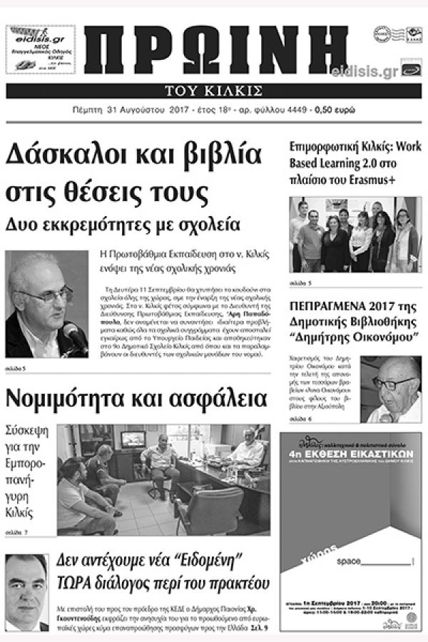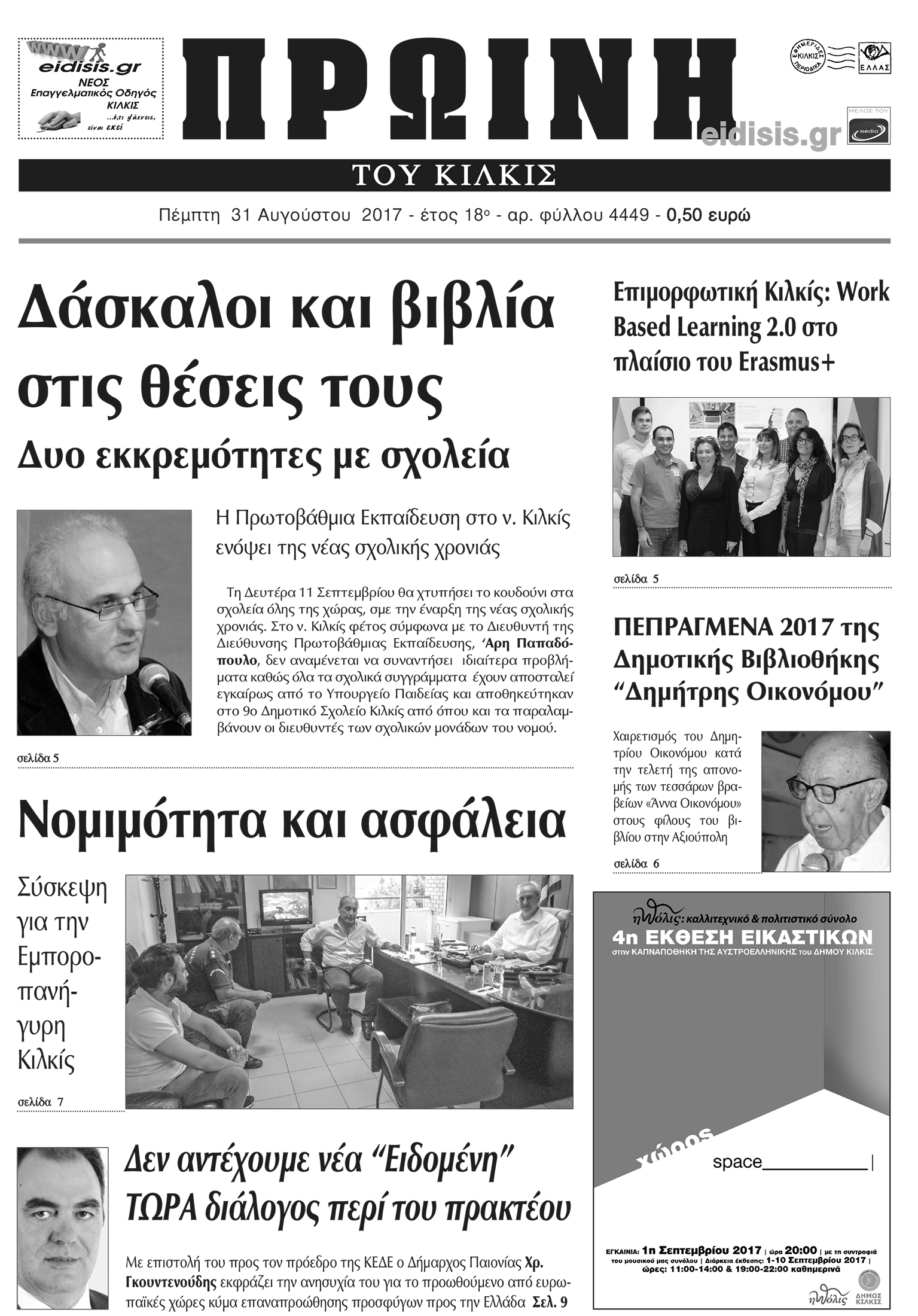 Πέντε χρόνια πριν. Διαβάστε τι έγραφε η καθημερινή εφημερίδα ΠΡΩΙΝΗ του Κιλκίς (31-8-2017)