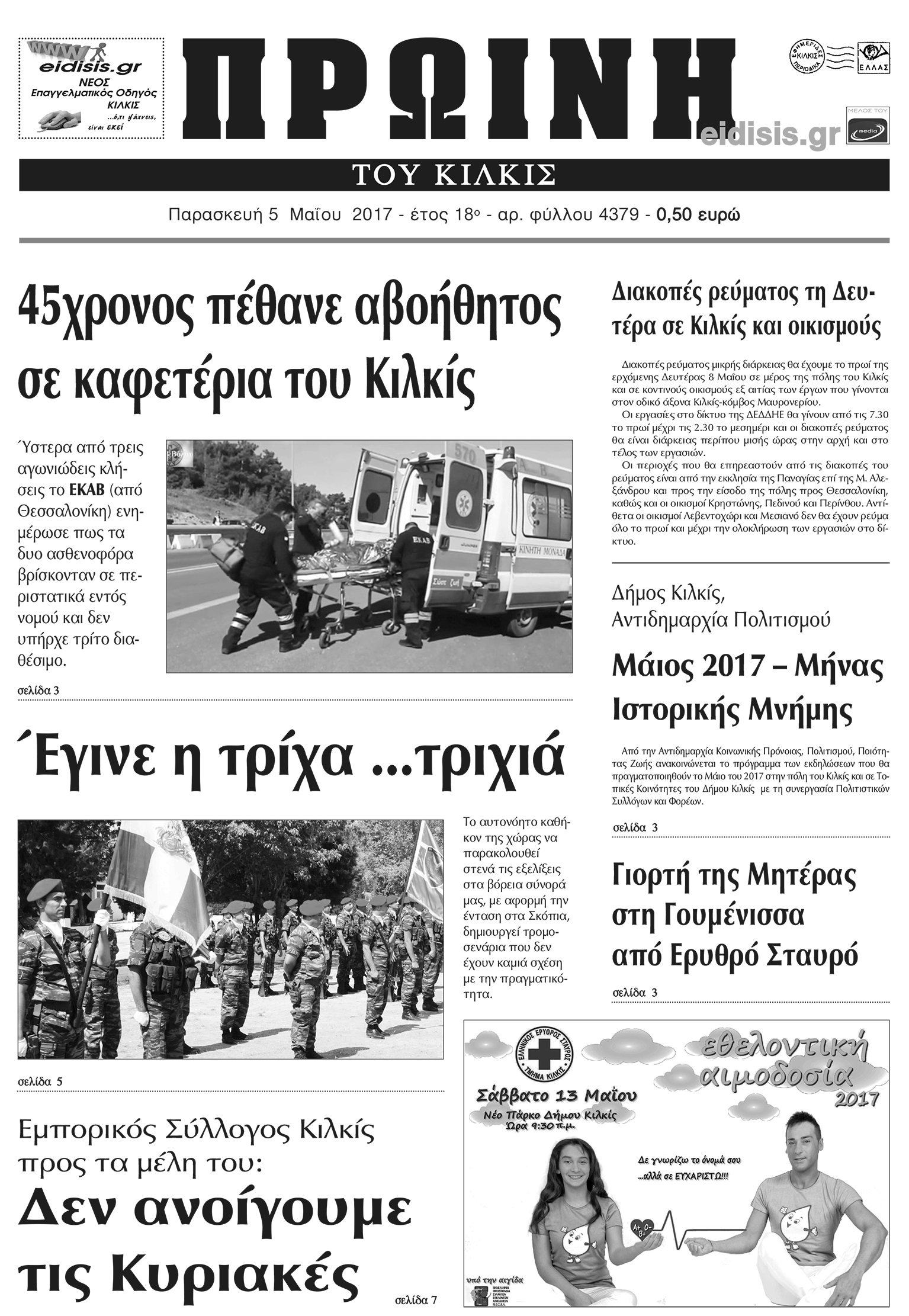 Πέντε χρόνια πριν. Διαβάστε τι έγραφε η καθημερινή εφημερίδα ΠΡΩΙΝΗ του Κιλκίς (5-5-2017)
