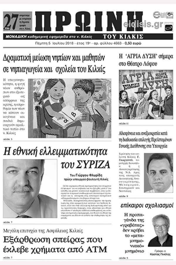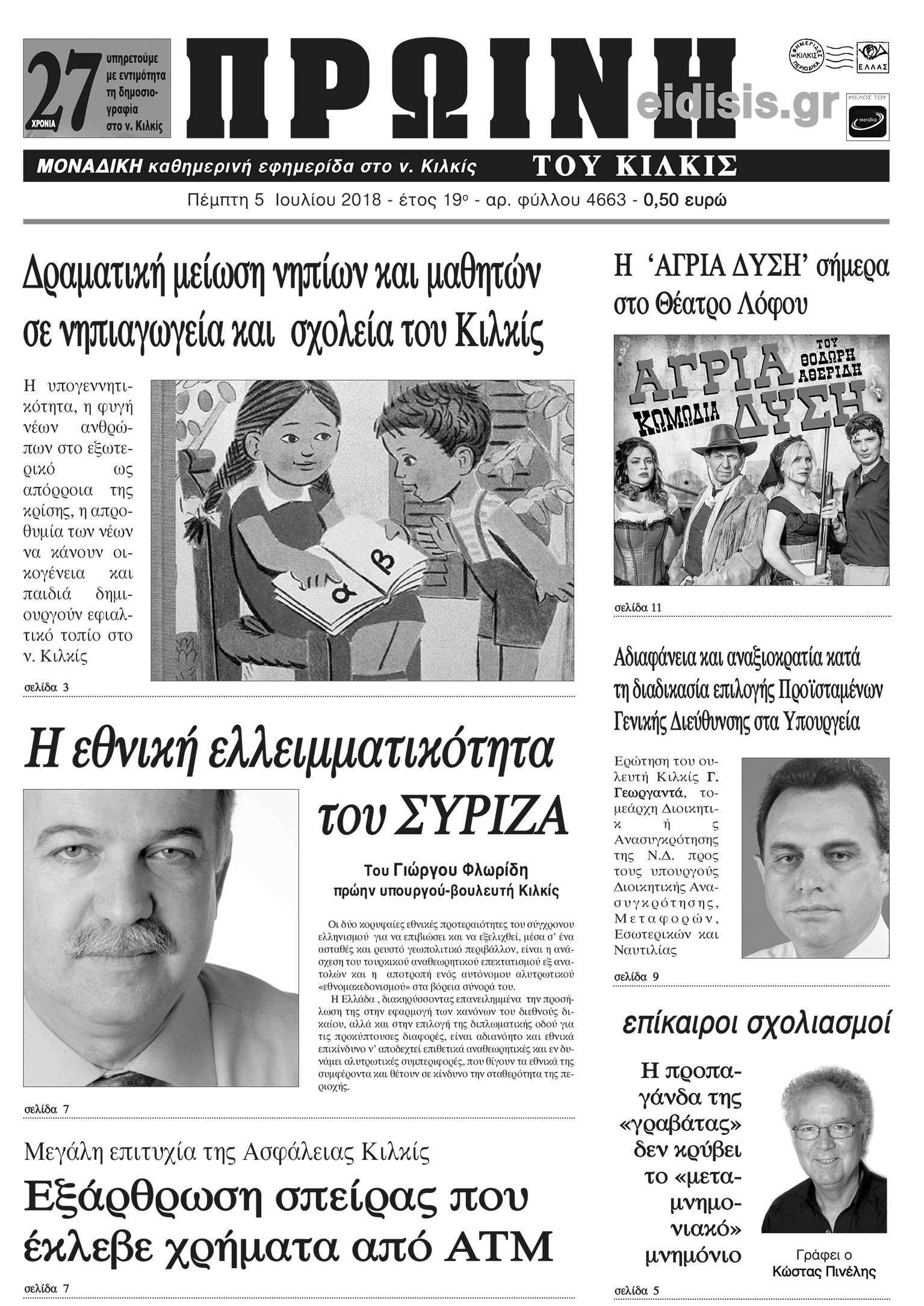 Πέντε χρόνια πριν. Διαβάστε τι έγραφε η καθημερινή εφημερίδα ΠΡΩΙΝΗ του Κιλκίς (5-7-2018)