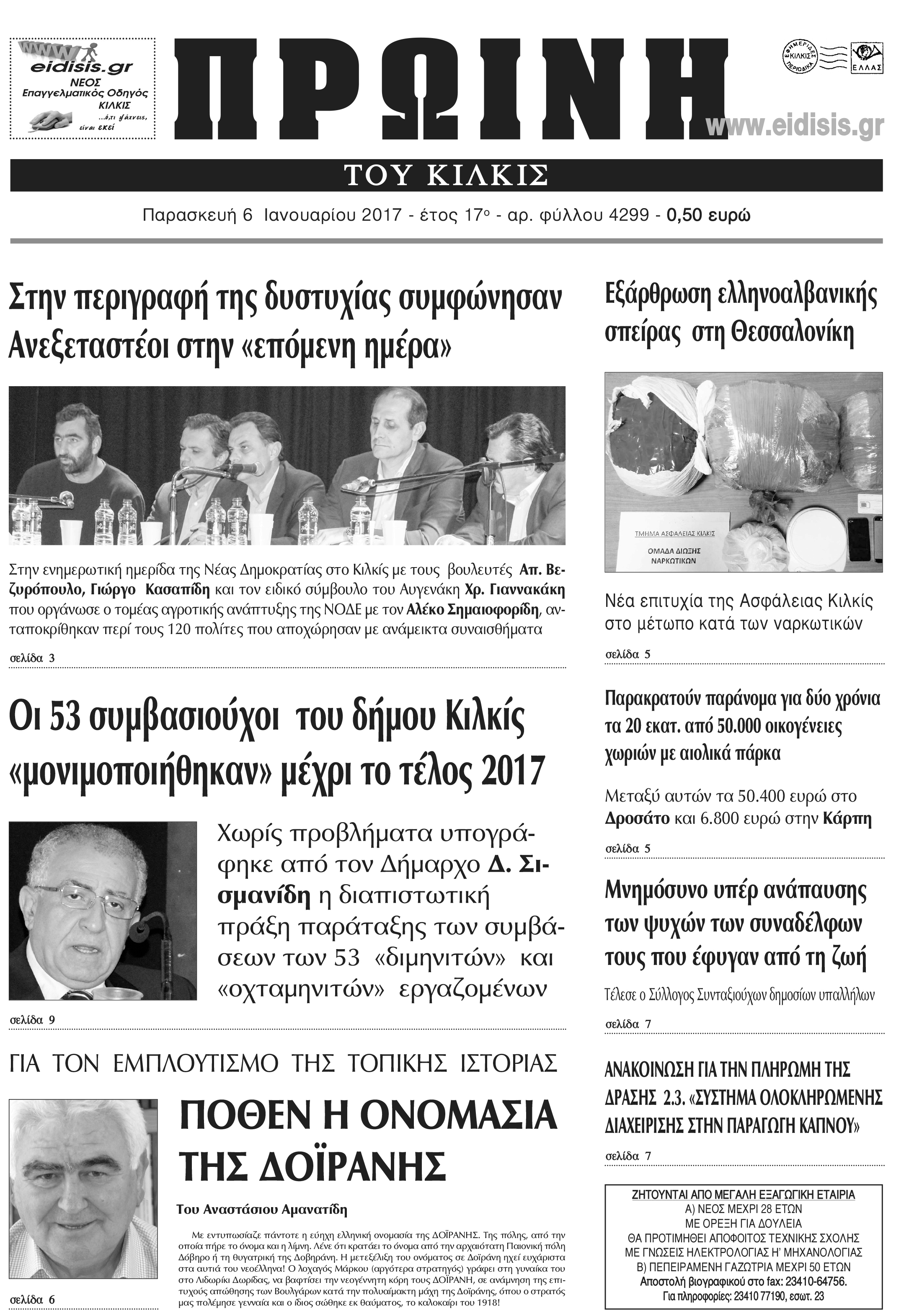 Πέντε χρόνια πριν. Διαβάστε τι έγραφε η καθημερινή εφημερίδα ΠΡΩΙΝΗ του Κιλκίς (6-1-2017)