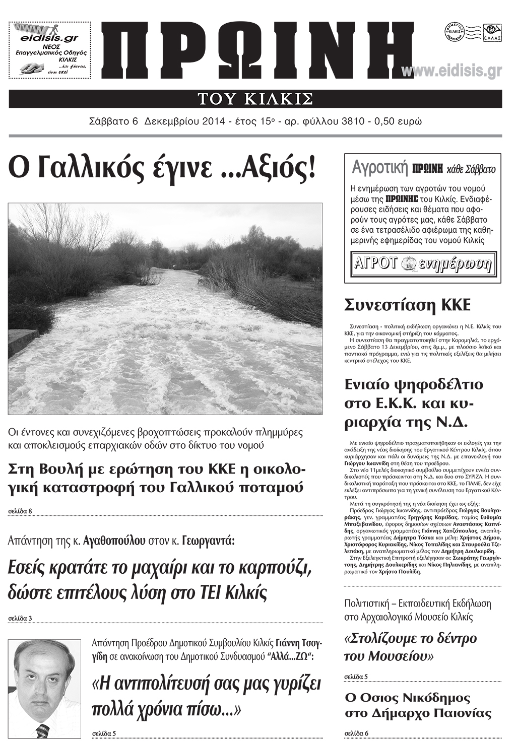 Πέντε χρόνια πριν. Διαβάστε τι έγραφε η καθημερινή εφημερίδα ΠΡΩΙΝΗ του Κιλκίς (6-12-2014)