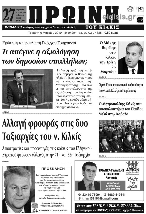 Πέντε χρόνια πριν. Διαβάστε τι έγραφε η καθημερινή εφημερίδα ΠΡΩΙΝΗ του Κιλκίς (6-3-2019)