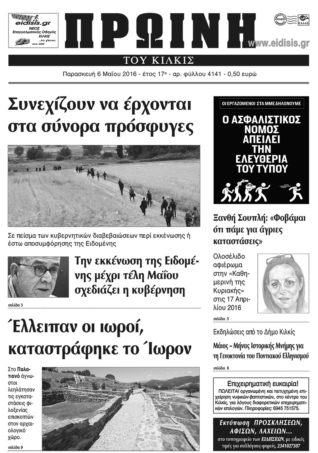 Πέντε χρόνια πριν. Διαβάστε τι έγραφε η καθημερινή εφημερίδα ΠΡΩΙΝΗ του Κιλκίς (6-5-2016)