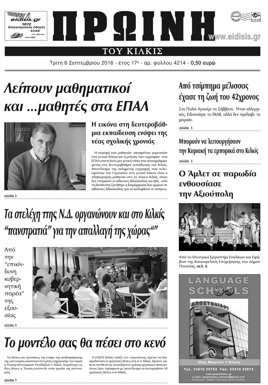 Πέντε χρόνια πριν. Διαβάστε τι έγραφε η καθημερινή εφημερίδα ΠΡΩΙΝΗ του Κιλκίς (6-9-2016)