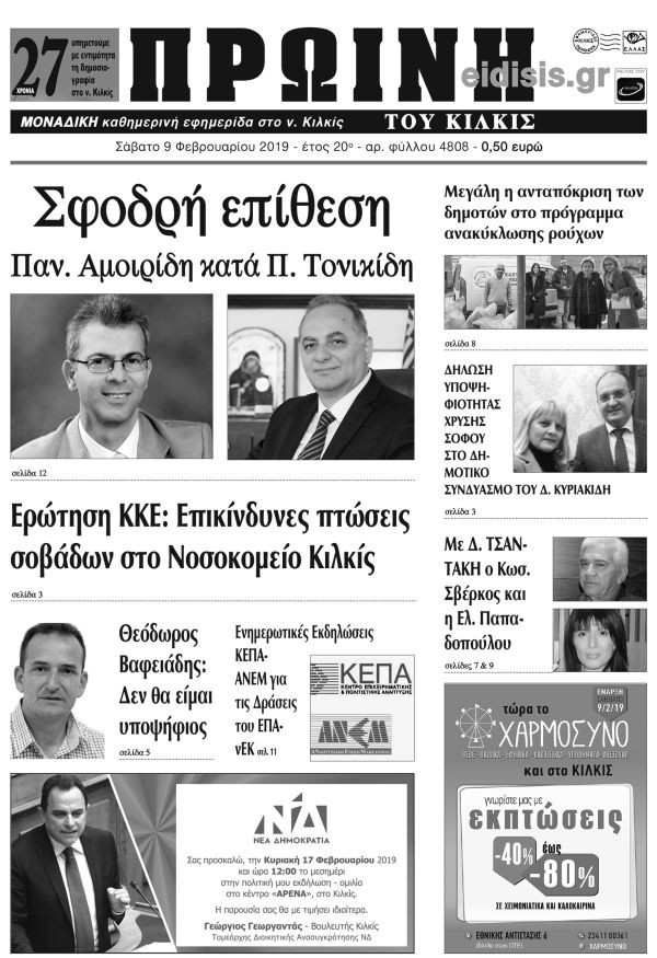 Πέντε χρόνια πριν. Διαβάστε τι έγραφε η καθημερινή εφημερίδα ΠΡΩΙΝΗ του Κιλκίς (9-2-2019)