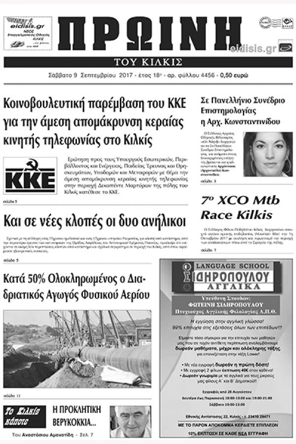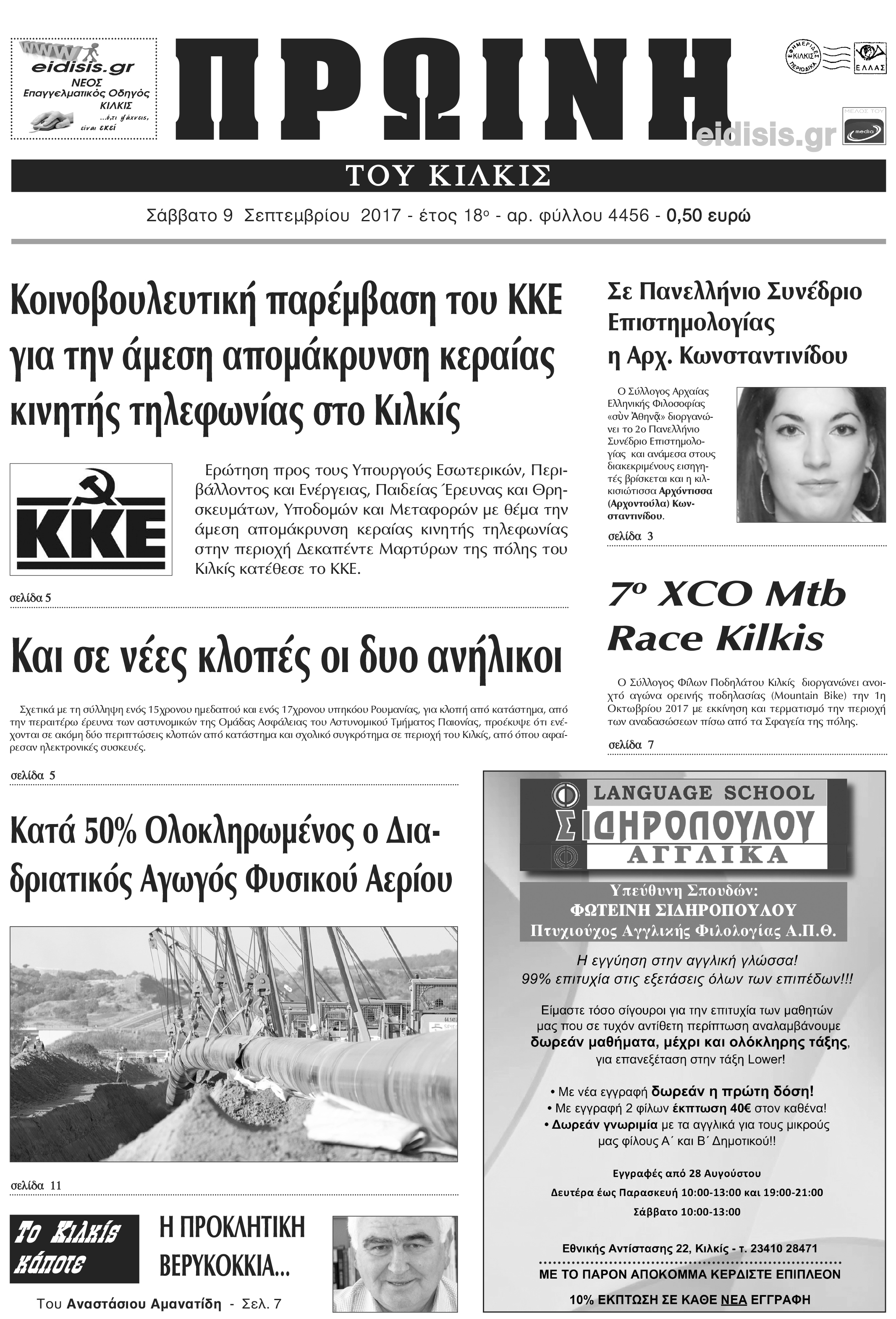 Πέντε χρόνια πριν. Διαβάστε τι έγραφε η καθημερινή εφημερίδα ΠΡΩΙΝΗ του Κιλκίς (9-9-2017)