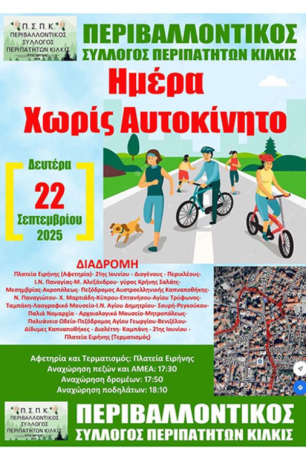 Σας περιμένουμε από τις 17.00 την Δευτέρα 22 Σεπτεμβρίου για την αναχώρηση πεζών και ΑΜΕΑ 17.30.