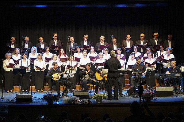 Η συναυλία ξεκίνησε με τη χορωδία να ερμηνεύει με εξαιρετική επιτυχία τραγούδια του συνθέτη που γοήτευσαν το κοινό. Τη χορωδία συνόδευσε η λαϊκή ορχήστρα του Πολυάνειου Ωδείου, που εδώ και δέκα χρόνια αποτελεί αναπόσπαστο κομμάτι του Μουσικού Συλλόγου, με μαέστρο το δάσκαλο μπουζουκιού Γιώργο Γεωργό.