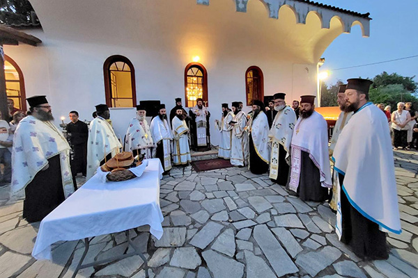 Με τις παραδοσιακές φανουρόπιτες να κυριαρχούν στον προαύλειο χώρο του Ιερού Παρεκκλησίου, δείγμα της ευσεβείας των πιστών και της διατήρησης της παράδοσης, ετελέσθη ο πανηγυρικός Εσπερινός μετά Λιτής και Αρτοκλασίας, χοροστατούντος του Σεβασμιωτάτου Μητροπολίτου Πολυανής και Κιλκισίου κ. Βαρθολομαίου, με τη συμμετοχή Ιερέων και Ιεροδιακόνων, με την προσευχητική παρουσία του πολιού Αρχιμ. Νικολάου Πιλιτσόπουλου που ιερουργεί στο συγκεκριμένο Παρεκκλήσιο.