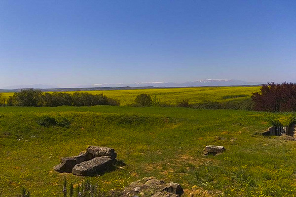 Ο Αρχαιολογικός Χώρος Ευρωπού με χρώματα... της Άνοιξης! Στο βάθος ο ορεινός όγκος του Βερμίου.