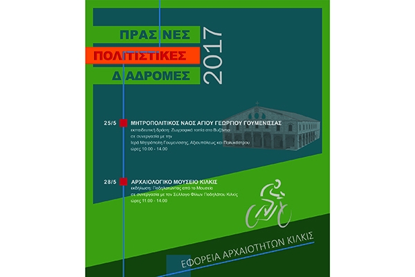 Η Εφορεία Αρχαιοτήτων Κιλκίς συμμετέχει για τρίτη συνεχή χρονιά στον εορτασμό των Πράσινων Πολιτιστικών Διαδρομών 2017, μια δράση που καθιερώθηκε από το Υπουργείο Πολιτισμού και Αθλητισμού από το 2012 σε χρονική εγγύτητα με την Παγκόσμια Ημέρα για το Περιβάλλον (5 Ιουνίου). Σκοπός της είναι να ευαισθητοποιήσει τους πολίτες σε θέματα που αφορούν στο φυσικό και πολιτισμικό περιβάλλον.