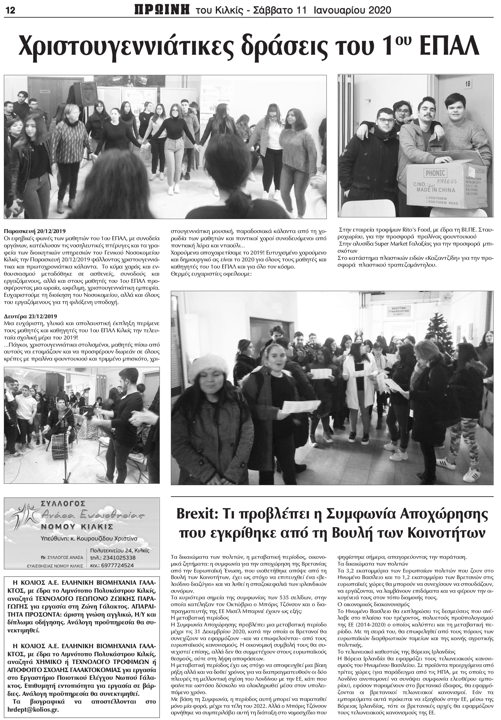 Πρωινή Κιλκίς (11-1-2020): Χριστουγεννιάτικες δράσεις από το 1ο ΕΠΑΛ Κιλκίς
