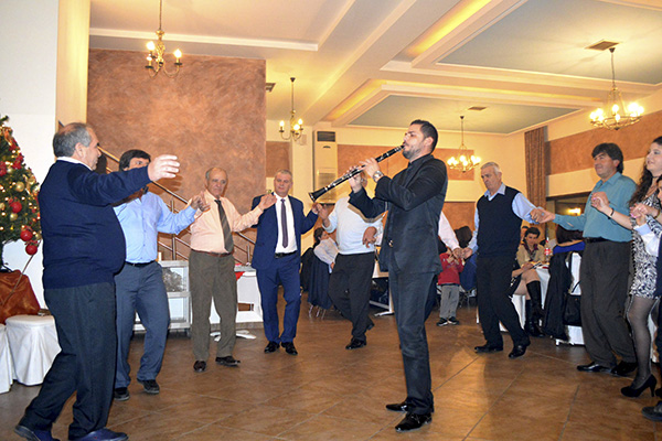 Οι παρευρισκόμενοι γέμισαν ασφυκτικά την όμορφα στολισμένη αίθουσα, απολαμβάνοντας ένα πλούσιο μενού με ζωντανή μουσική από τα χάλκινα της Γουμένισσας και τη συνοδεία τραγουδιστή.