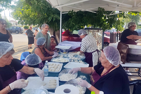 Η ευρύχωρη πλατεία της Κοινότητας λειτούργησε ως δημιουργικό εργαστήρι γευσιγνωσίας με τις γυναίκες κατά κύριο λόγο αλλά και τους άνδρες της Ευκαρπίας, της Ενορίας Αγίου Δημητρίου Κιλκίς, του Δημόσιου Ινστιτούτου Επαγγελματικής Κατάρτισης (ΔΙΕΚ) Κιλκίς και των Πολιτιστικών Ποντιακών Συλλόγων Δροσάτου, Αγίου Αντωνίου ‘’Τα Κρούσια’’ και Λευκώνα Σερρών να πλάθουν τη ζύμη, να βοηθούν στη γέμιση του τυριού και να τηγανίζουν τα πιροσκί διαθέτοντας δωρεάν το εκλεκτό τοπικό προϊόν στους πολίτες και σε εκατοντάδες επισκέπτες από την ευρύτερη περιοχή που συνέρρευσαν στην εκδήλωση.