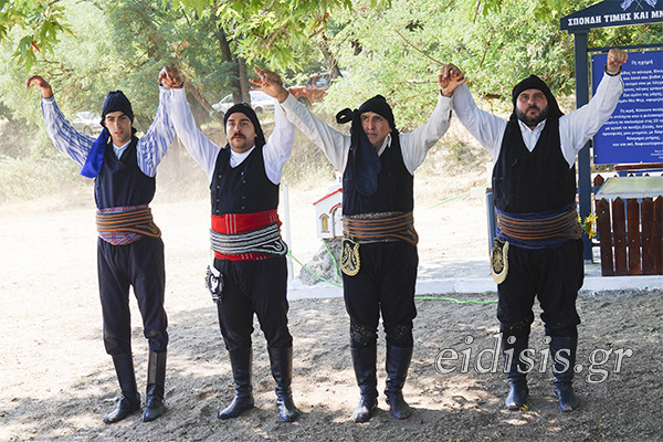 Η τελετή ξεκίνησε με επιμνημόσυνη δέηση από τον πατέρα Ηλιάδη, χαιρετισμό του δημάρχου, την κεντρική ομιλία από τον σοφό δάσκαλο Χρήστο Ίντο, για να ακολουθήσει η αποκάλυψη του μνημείου με ανάγνωση της αναθηματικής επιγραφής από τον συγγραφέα της Νίκο Κωνσταντινίδη, ανάγνωση αποσπάσματος της Ιλιάδος (θρήνος του Αχιλλέα). Η τελετή έκλεισε με τον πυρρίχιο χορό από χορευτές τοπικών συλλόγων και την ανάκρουση του Εθνικού Ύμνου.