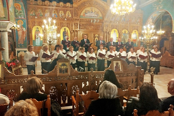 Υπό τη διεύθυνση του μαέστρου Γιάννη Ζγούρα και υπό τους ήχους πιάνου έψαλε τέσσερις ύμνους: