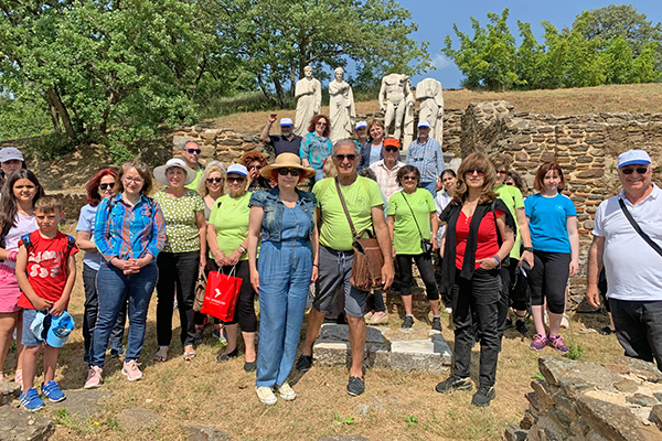 Μετά από σύντομο πικ νικ στη σκιά των βελανιδιών, με φόντο τα αντίγραφα αγάλματα, επισκέφθηκαν την τρίκλιτη Βασιλική του 6ου αιώνα της Ηράκλειας (Κορομηλιάς) και επέστρεψαν στην πόλη του Κιλκίς.