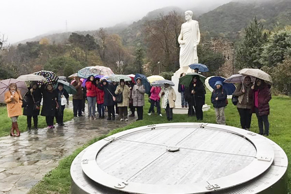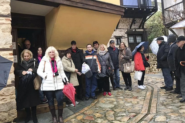 Εξαίσιες οι διαδρομές προς Ταξιάρχη και Βαρβάρα με μοναδικά χρώματα. Στην Αρναία των ανακαινισμένων αρχοντικών περπάτησαν υπό βροχή μερικές διαδρομές, επισκέφθηκαν τα πλούσια Μουσεία Υφαντικής και Λαογραφικό και κατέληξαν στην Ιστορική Εκκλησία του Αγίου Στεφάνου με το γυάλινο δάπεδο και εμφανείς προηγούμενους Ναούς. Ξεναγήθηκαν από τον πρώην Δήμαρχο Κο Καραστέργιο Στέργιο και την Υπεύθυνη των Δημοτικών Μουσείων. Η ικανοποίηση όλων ήταν εμφανής σε όλη την διάρκεια της ημέρας και για την συνεχή ασταμάτητη βροχή.