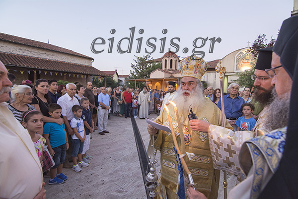 Με το τέλος της θ. Λειτουργίας λιτανεύθηκε η θαυματουργός ιερή εικόνα της Παναγίας Γουμένισσας, πάλι με συνοδούς τα χάλκινα της πόλεως που παιάνιζαν τους ήχους των εγκωμίων, μια ολόψυχη ευλαβική προπαντός πανδαισία για πλήθος προσκυνητών (επίκεντρο της κοινοτικής ζωής όλης της περιοχής, ομορφιά της λαογραφίας του τόπου για δεκαετίες και δεκαετίες) καθώς και τιμητικό άγημα αστυνομικών, για το οποίο και ο Μητροπολίτης κ. Δημήτριος ευχαρίστησε δημοσίως τον Περ. Αστυνομικό Δντη Κ. Μακεδονίας. Κυρίως, όμως, δεν παρέλειψε να εκφράσει έντονα τον κοινό κοινωνικό και τον ποιμαντορικό του προβληματισμό για την μεθοδευμένη δεινή δημογραφική αλλοίωση και την θεατή πια πνευματική διάβρωση της πατρίδος μας.