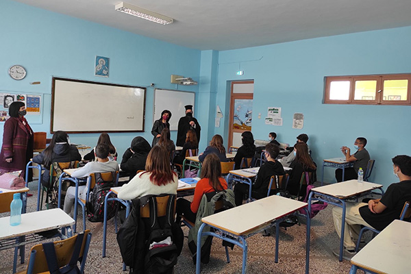Ο Σεβασμιώτατος είχε την ευκαιρία να επικοινωνήσει με τους καθηγητές του σχολείου και να συζητήσει με τους μαθητές του 1ου Γυμνασίου για θέματα που άπτονταν του ενδιαφέροντός τους.
