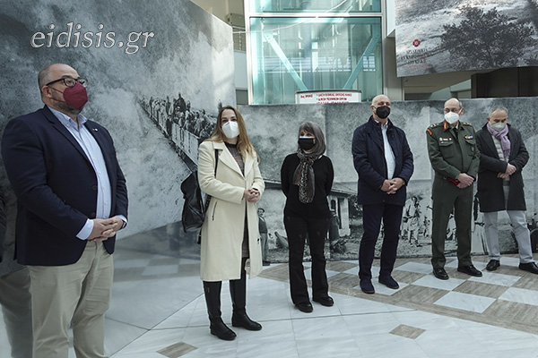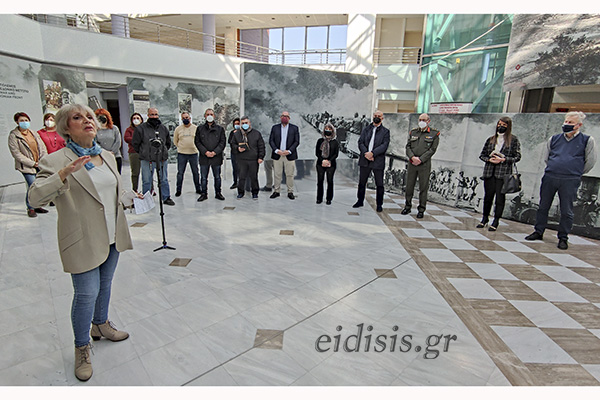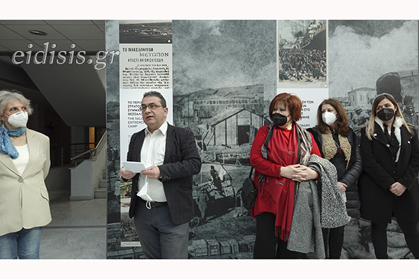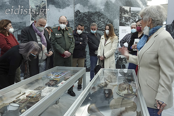 Ακολούθησε ξενάγηση στην έκθεση η οποία περιλαμβάνει – μεταξύ άλλων πλούσιο οπτικό αρχειακό υλικό, όπως καρτ ποστάλ, φωτογραφίες, έγγραφα κ.ά., προερχόμενο από διάφορους φορείς, όπως π.χ. η ιδιωτική συλλογή του συνταγματάρχη εν αποστρατεία κ. Βασιλείου Νικόλτσιου, το Ίδρυμα Μουσείου Μακεδονικού Αγώνα, το Κέντρο Ιστορίας Θεσσαλονίκης, τα Γενικά Αρχεία του Κράτους – Ιστορικό Αρχείο Μακεδονίας. Στη συνέχεια, παρουσιάστηκαν δύο video που συνοδεύουν την έκθεση. Η παραγωγή του ενός εκ των δύο έχει χρηματοδοτηθεί από την Περιφερειακή Ενότητα Κιλκίς.