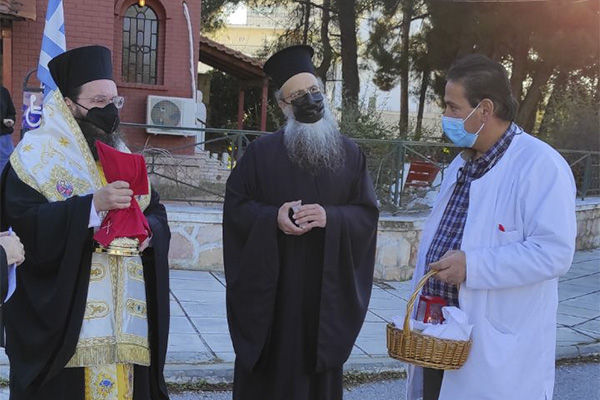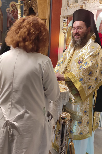 Ακολούθως, ο Σεβασμιώτατος μετέφερε την Θεία Μετάληψη στα δωμάτια των ασθενών, οι οποίοι επιθυμούσαν να μεταλάβουν, όμως η μετάληψή τους δεν κατέστη δυνατή...