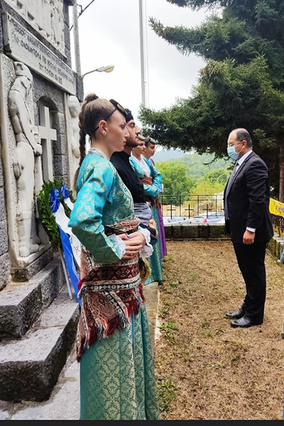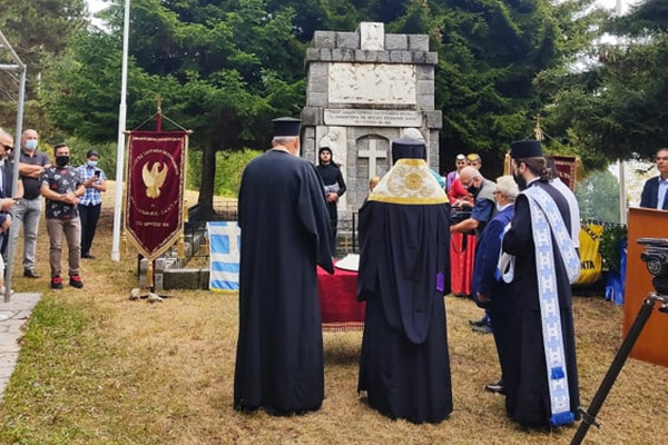 Ακολούθησε επιμνημόσυνη δέηση στο μνημείο των Σανταίων και κατάθεση στεφάνων από τις επίσημες αρχές.