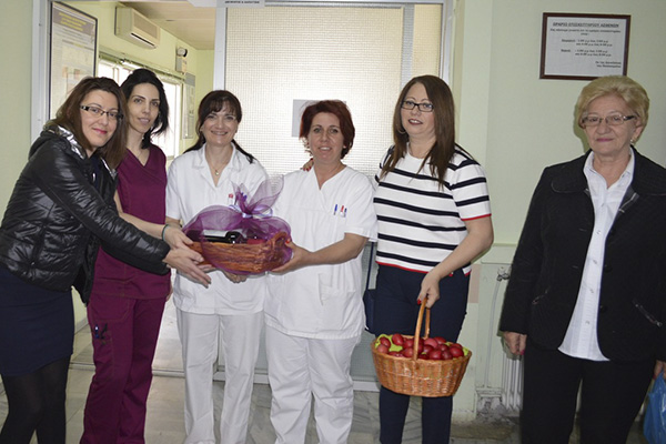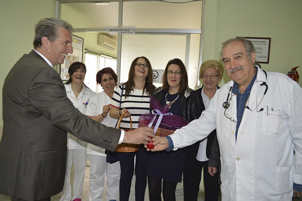 Τον Πρόεδρο Αστέριο Τάτση και το Δ.Σ. υποδέχθηκαν, ο Διευθυντής της Παθολογικής Κλινικής του Γ.Ν. Γουμένισσας, κ. Αιμίλιος Σάτσογλου και το προσωπικό. Όπως αναφέρθηκε, το Δ.Σ. χαρακτήρισε υποχρέωση του να βρεθούν στο πλευρό των ασθενών και των οικογενειών τους, οι οποίοι αυτές τις γιορτινές μέρες ζουν το δικό τους Γολγοθά, ενώ εξέφρασε τη στήριξη τους στους εργαζομένους που βρίσκονται καθημερινά στη γραμμή του καθήκοντος. Σε κάθε ασθενή προσέφεραν από ένα κόκκινο αυγό και μια εικόνα της Παναγίας, ενώ στο νοσηλευτικό προσωπικό ένα καλάθι με κρασιά τσουγκρίζοντας κόκκινα αυγά.
