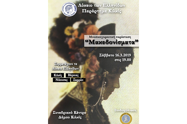 Στις 19 Μαρτίου 2019, το Λύκειο Ελληνίδων Παράρτημα Κιλκίς, ο ιστορικός αυτός πολιτιστικός σύλλογος του νομού γίνεται 26 ετών. Στο πλαίσιο των γενεθλίων του, που αποτελεί και μια μεγάλη γιορτή παράδοσης για την πόλη του Κιλκίς, το ΛΕΚ σε συνδιοργάνωση με το Δήμο Κιλκίς, διοργανώνει το Σάββατο 16 Μαρτίου 2019, στις 7μ.μ. ειδική εορταστική μουσικοχορευτική εκδήλωση με τίτλο «Μακεδονίσματα», στο Συνεδριακό Κέντρο του Δήμου Κιλκίς. Στην κορυφαία αυτή μουσικοχορευτική αφηγηματική παράσταση που ετοιμάζεται πυρετωδώς από το Δ.Σ., το χοροδιδάσκαλο Δήμο Πραντσίδη και τους χορευτές του Τμήματος Παραστάσεων του ΛΕΚ, θα συμμετάσχουν και Χορευτικές Ομάδες των Λυκείων Ελληνίδων Βέροιας, Νάουσας και Σερρών, παρουσιάζοντας χορούς, τραγούδια και έθιμα περιοχών της Μακεδονίας.
