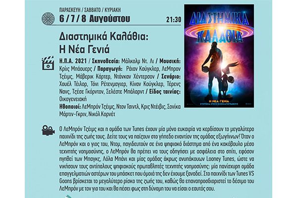 Η ταινία, φετινής παραγωγής θα προβληθεί την Παρασκευή 6, το Σάββατο 7 και την Κυριακή 8 Αυγούστου στις 21:30 στη δροσερή γωνιά του ‘’Δημήτριου Ζωηρού’’.