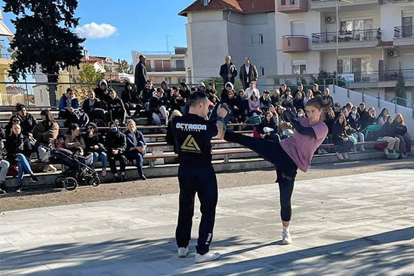 Από τις 11.00 το πρωί έως τις 13.30 το μεσημέρι, πραγματοποιήθηκε παρουσίαση τεχνικών γυναικείας αυτοάμυνας, από μέλη του ΚΔΑΠ “Kinesis” στο θεατράκι του πάρκου, και στη συνέχεια ακολούθησε βιωματικό παιχνίδι για τα έμφυλα στερεότυπα και τη βία, με τίτλο “τα αγόρια, τα κορίτσια δεν μπορούν να το κάνουν αυτό”, όπου συμμετείχαν παιδιά Γυμνασίου, με συντονισμό από ψυχολόγους της υπηρεσίας. Στη δράση συμμετείχαν συνολικά 50 μαθητές και μαθήτριες και συγκεκριμένα τα τμήματα Γ1 και Γ4 του 1ου Γυμνασίου Κιλκίς.