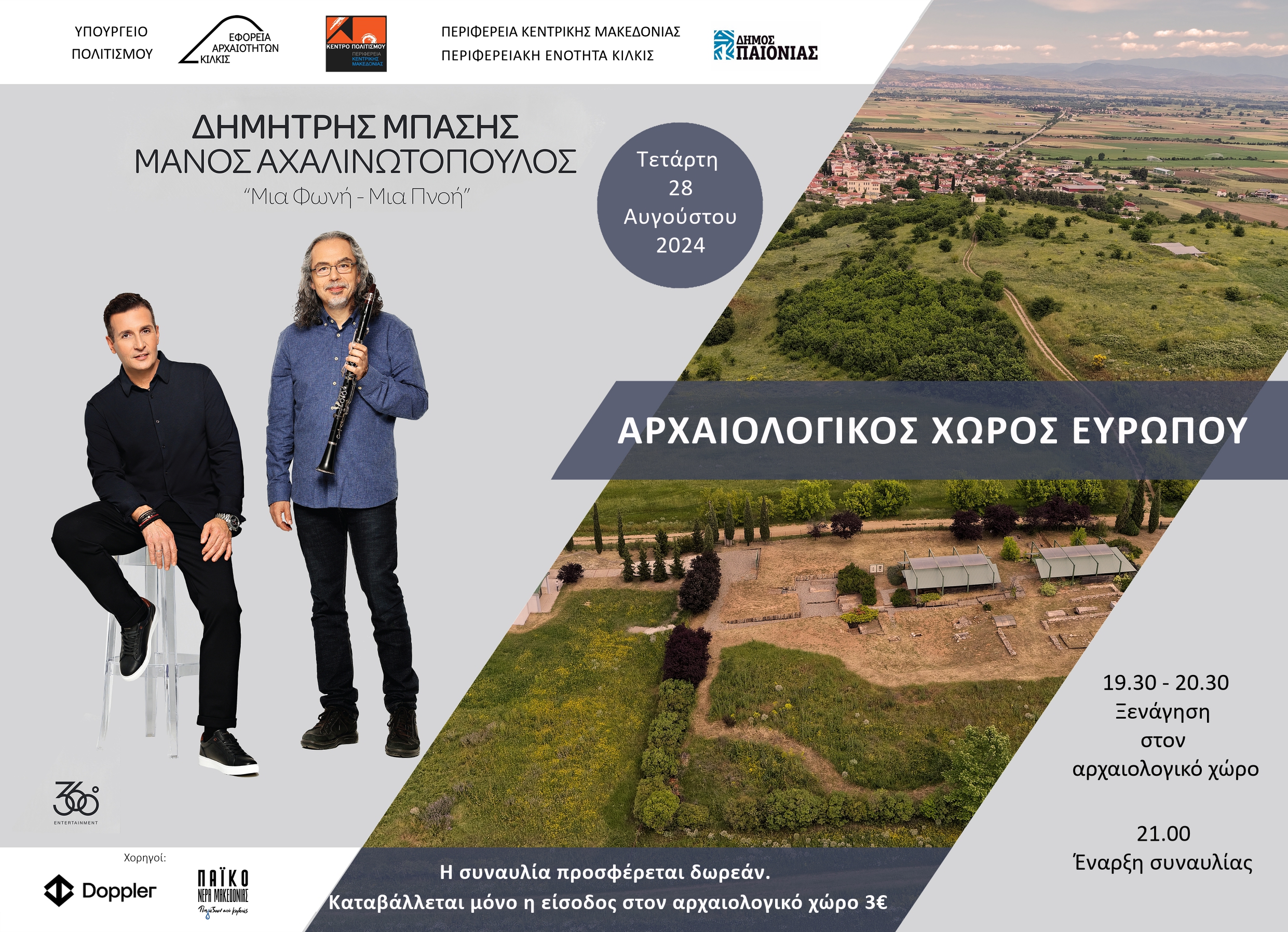 Συνδιοργάνωση - επιχορήγηση: ΥΠΠΟ - Εφορεία Αρχαιοτήτων Κιλκίς, Κέντρο Πολιτισμού Περιφέρειας Κεντρικής Μακεδονίας, ΠΚΜ - Περιφερειακή Ενότητα Κιλκίς και Δήμος Παιονίας. Με την υποστήριξη – χορηγία των Εταιρειών Doppler & Πάικο - Νερά Μακεδονίας.