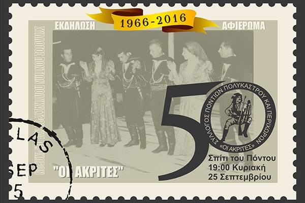 Ο Σύλλογος Ποντίων Πολυκάστρου και Περιχώρων «Οι Ακρίτες» διοργανώνει την Κυριακή 25 Σεπτεμβρίου και ώρα 19:00 στο Σπίτι του Πόντου μια εκδήλωση-αφιέρωμα για τα 50 χρόνια από την ίδρυσή του.