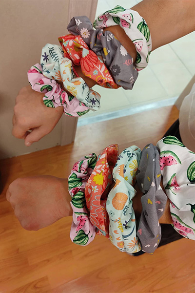Φτιάχνουμε πυρετωδώς λαστιχάκια μαλλιών, τα περιβόητα Scrunchies και τα προμηθεύομε δωρεάν στην αγαπημένη μας μητέρα κ. Κική Μπολυμένη - Mystique.dreams, που με χαρά δέχτηκε αφιλοκερδώς να τα μεταπουλάει στην Λαϊκή του Κιλκίς, του Χέρσου και της Αξιούπολης. Οι δύο πρώτες παραγωγές μας βγήκαν αμέσως Sold out βγήκαν και με μεγάλη μας χαρά θα συνεχίσουμε με διαφορετικά σχέδια και υφάσματα, ώστε να τα βρείτε στην Λαϊκή και την επόμενη εβδομάδα.