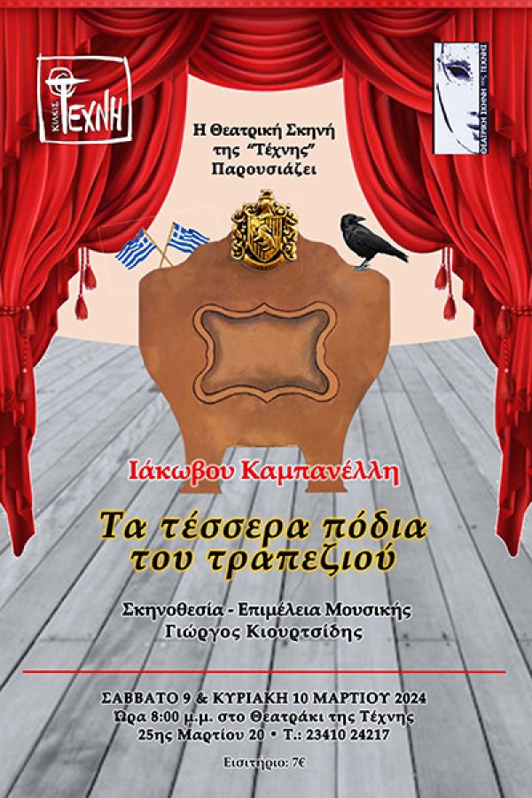 Η μαεστρία του Ιάκωβου Καμπανέλλη στο έργο «Τα τέσσερα πόδια του τραπεζιού» δεν έγκειται μόνο στη διασκέδαση που προσφέρει αλλά κυρίως στη βαθιά διείσδυση του στις παθογένειες της ελληνικής κοινωνίας. Τα τέσσερα πόδια του τραπεζιού δεν είναι οι τέσσερις γιοι ενός ετοιμοθάνατου πατέρα. Είναι τα σαθρά θεμέλια με τα οποία έμπαινε η Ελλάδα στη νέα εποχή: μονομερής ανάγνωση της ιστορίας, κουλτούρα κολλημένη στο τσάμικο του «Μπιρμπίλη», αξιακό σύστημα με γνωρίσματα τις μυστικές παρακολουθήσεις, το μίσος προς τον εργάτη, οικονομία της συσσώρευσης χωρίς προοπτική και απόρριψη των αμφισβητήσεων των νέων. Η τάβλα του τραπεζιού δεν είναι μόνο ο παρών-απών πατέρας, αλλά η ανυπαρξία του μέλλοντος. Πώς να σταθεί το τραπέζι με τόσο στραβά, κοντά και άνισα πόδια.