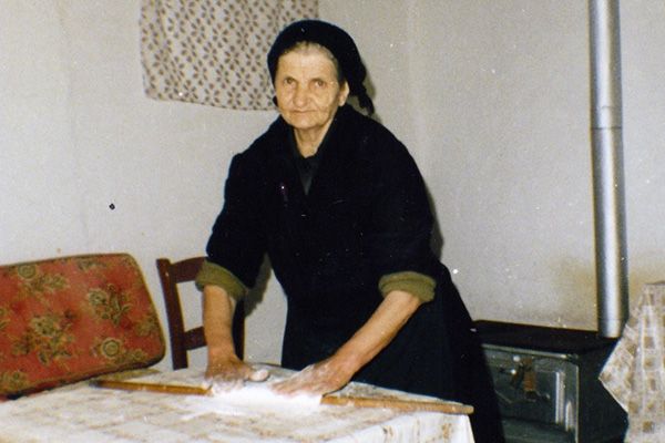 Άναψε τη μασίνα, πήγε στις φωλιές και μάζεψε τ΄ αυγά, το σπιτικό της είχε τυρί, βούτυρο, λάδι ή λίγδα παλιότερα, πήρε αλεύρι από το τσουβάλι, το κοσκίνισε μέσα στο ταψί, το ζύμωσε με νερό και αλάτι, το σταύρωσε, το άφησε να ξεκουραστεί (φουσκώσει).