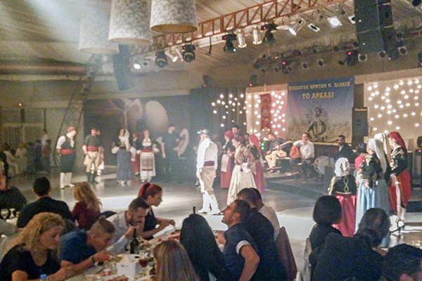 Τα προεόρτια εδέσματα και ποτά. Προϊόντα και παρασκευές της κρητικής γης και των άξιων παιδιών της. Η βραστή γίδα και το γαμοπίλαφο ως σήματα κατατεθέντα δεν μπορούσαν να λείψουν.