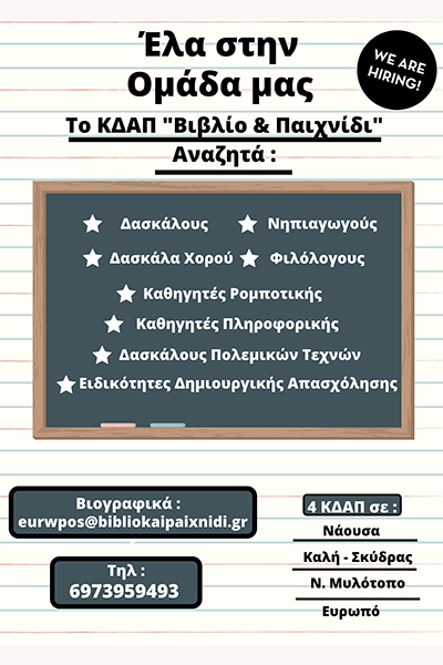 ΚΔΑΠ "Βιβλίο & Παιχνίδι" Νάουσα: https://www.facebook.com/BiblioKaiPaixnidiNaousa