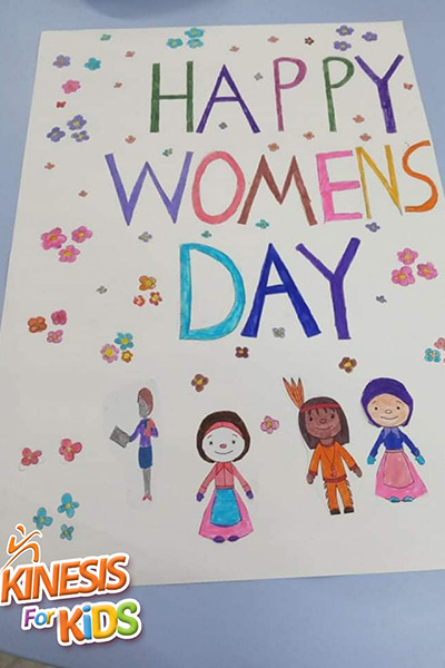 Συνεχίσαμε με το παιχνίδι στα αγγλικά και φωνάξαμε «Happy women's day»! Η 8η Μαρτίου είναι αφιερωμένη στις γυναίκες γι' αυτό και την ώρα των αγγλικών στο αφού συζητήσαμε γι' αυτήν τη μέρα, δημιουργήσαμε μία αφίσα όπου με μεγάλα γράμματα γράψαμε και χρωματίσαμε "HAPPY WOMEN'S DAY" και προσθέσαμε γυναικείες φιγούρες να πλαισιώνουν τη φράση μας!