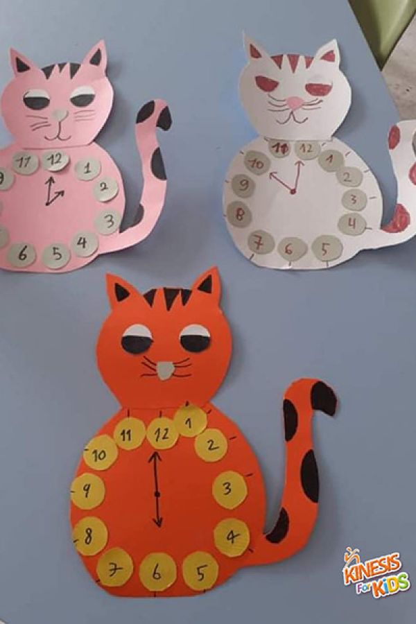 Την ώρα των εικαστικών φτιάξαμε μια γάτα-ρολόι! Έτσι οι καλλιτέχνες μας σήκωσαν τα μανίκια και ξεκίνησαν να ζωγραφίζουν, να κόβουν και να συναρμολογούν τη γάτα!