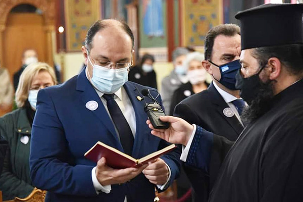 Στο τέλος, ο Σεβ. Μητροπολίτης Πολυανής και Κιλκισίου κ. Βαρθολομαίος απένειμε το οφφίκιο του Πρωτοπρεσβύτερου στον Προϊστάμενο του Ναού Οικ. π. Πολύκαρπο Κοντοζίδη, συγχαίροντάς τον για την άρτια διοργάνωση της πανηγύρεως.