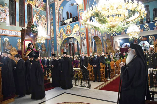 "Εδώ, στην όμορφη πόλη μας, ενωμένοι και αγαπημένοι δοξολογούμε τον Τριαδικό Θεό και αναπέμπουμε ευχαριστήρια δέηση για το δώρο του, τους θεοτίμητους Αγίους που μας σκέπουν και μας προστατεύουν. Ενότητα που οφείλουμε να διατηρήσουμε και να διαφυλάξουμε για την αγάπη μας στον Χριστό και στην πατρίδα μας. Χρόνια Πολλά!