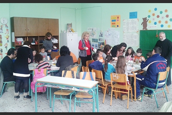 Τα παιδιά είχαν την ευκαιρία να συμμετέχουν διαδραστικά σε μία σειρά βιωματικών δραστηριοτήτων. Οι ωφελούμενοι του Κέντρου Κοινωνικής Στήριξης χρησιμοποίησαν πηλό, από τα εργαστήρια στα οποία απασχολούνται στη δομή, για τη δημιουργία ροδιών. Όλα τα παιδιά συμμετείχαν βάζοντας τη φαντασία τους στην χρήση των χρωμάτων για τις κατασκευές αλλά και τη διακόσμηση αυτών. Στη συνέχεια είχαν την ευκαιρία να γευματίσουν όλοι μαζί με εδέσματα τα οποία είχαν ετοιμάσει νωρίτερα οι μαθητές του σχολείου.