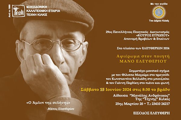 Το φετινό, τιμητικό αφιέρωμα, στο πλαίσιο του 29ου Πανελλήνιου Ποιητικού Διαγωνισμού «Κούρος Ευρωπού», αφορά στον ποιητή Μάνο Ελευθερίου και φέρει τον τίτλο «Ο Άμλετ της Σελήνης».