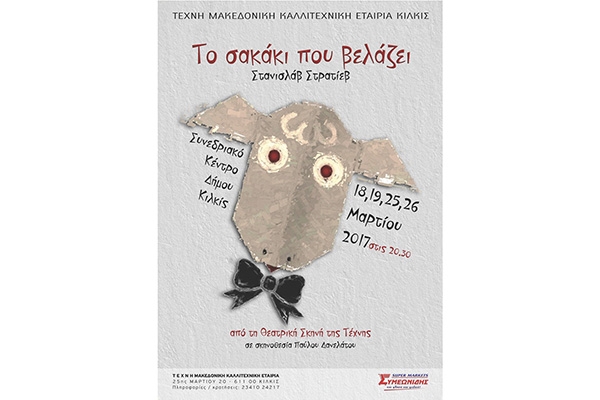 H Θεατρική Σκηνή της ΤΕΧΝΗΣ Κιλκίς παρουσιάζει το θρυλικό έργο του Στανισλάβ Στρατίεβ «Το σακάκι που βελάζει» στις 18, 19, 25 και 26 Μαρτίου 2017 στο Συνεδριακό Κέντρο του Δήμου Κιλκίς. Έναρξη παραστάσεων: 8.30μ.μ.