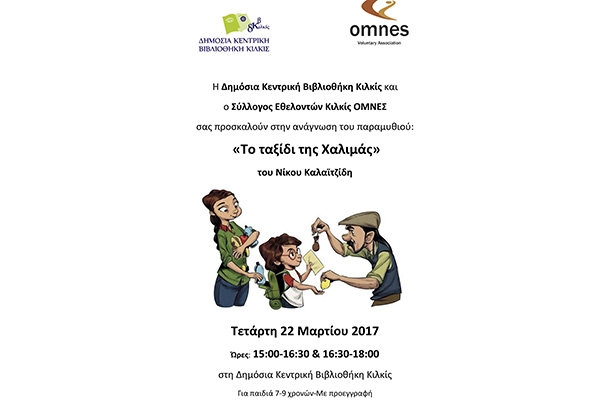 Η Δημόσια Κεντρική Βιβλιοθήκη Κιλκίς σε συνεργασία με τον Σύλλογο Εθελοντών Κιλκίς ΟΜΝΕΣ διοργανώνουν στο χώρο της βιβλιοθήκης βιβλιοανάγνωση του παραμυθιού «Το ταξίδι της Χαλιμάς», το οποίο δημιούργησε ο Νίκος Καλαϊτζίδης με τη βοήθεια της μη κερδοσκοπικής θεατρικής ομάδας «mermiξ» και δεκάδες εθελοντές. Το παραμύθι έχει μεταφραστεί σε περίπου 20 γλώσσες.