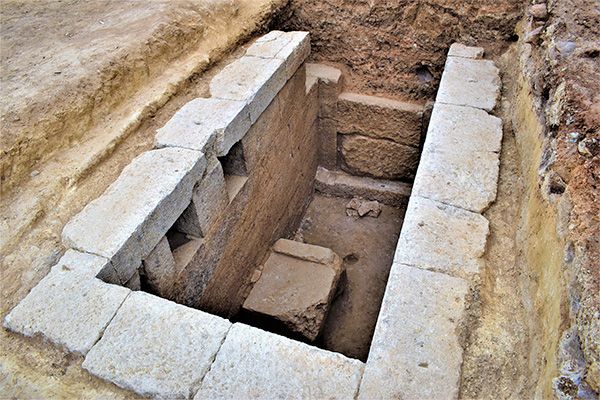 Η ανασκαφική έρευνα έφερε στο φως συλημένο ταφικό μνημείο ενδιαφέρουσας αρχιτεκτονικής μορφής του τύπου του κιβωτιόσχημου τάφου με θύρωμα και θήκες. Ο τάφος αυτός δομήθηκε αριστοτεχνικά εντός ορύγματος, που είχε διανοιχθεί σε ιζήματα αμμώδους και αργιλομαργαϊκής σύστασης και προστατεύθηκε με περισσή γνώση από τις πλευρικές πιέσεις τους.