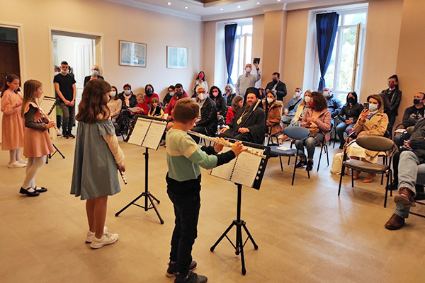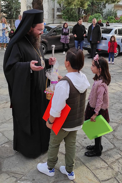 Τα παιδιά που φοιτούν στο Ωδείο της Ιεράς Μητροπόλεως, απέδωσαν μουσικούς ύμνους με φλάουτο, βιολί και πιάνο, ενώ η χορωδία τραγούδησε και τα κάλαντα του Λαζάρου.