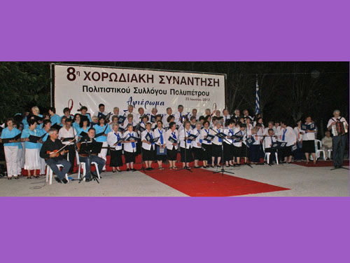 Πραγματοποιήθηκε με εξαιρετική επιτυχία η 8η χορωδιακή συνάντηση Πολυπέτρου από το τοπικό πολιτιστικό σύλλογο στο υπαίθριο χώρο του γηπέδου μπάσκετ του χωριού. Η φετινή συνάντηση είχε ξεχωριστή σημασία διότι ήταν η πρώτη από μια σειρά συναντήσεων που θα ακολουθήσουν τα επόμενα χρόνια αφιερωμένες σε μεγάλους μουσικοσυνθέτες της χώρας μας που τα τραγούδια τους άφησαν εποχή και τραγουδήθηκαν από όλους μας. Η έναρξη της ενότητας αυτής των αφιερωμάτων ήταν προς τιμή του μεγάλου Θεσσαλονικιού μουσικοσυνθέτη Σταύρου Κουγιουμτζή.